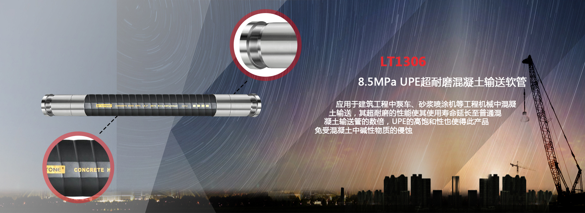 專為用泵傳送水泥漿,濕水泥設計。外層是黑色SBR/NR混合傳導橡膠,耐磨,耐氧化。...